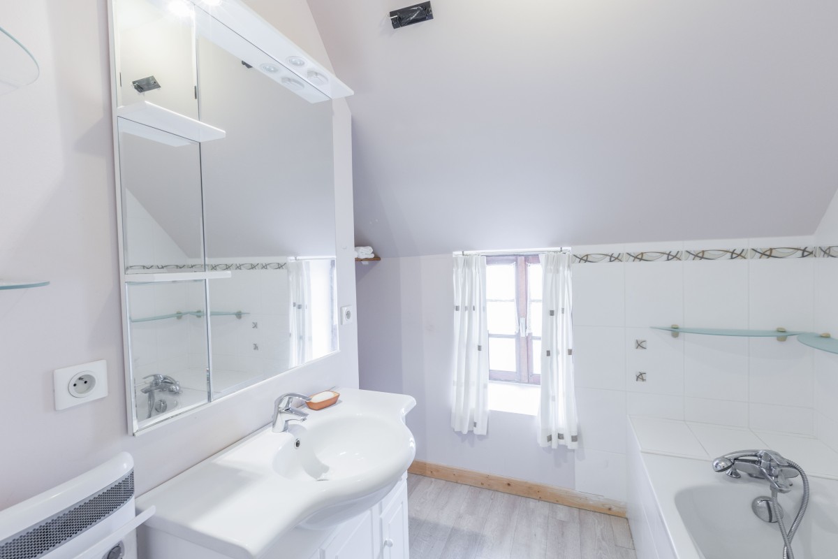 - Salle d’eau avec vasque, WC, baignoire